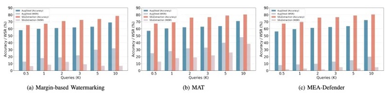 图2 SSLExtraction 在不同询问次数下准确度和水印准确度结果