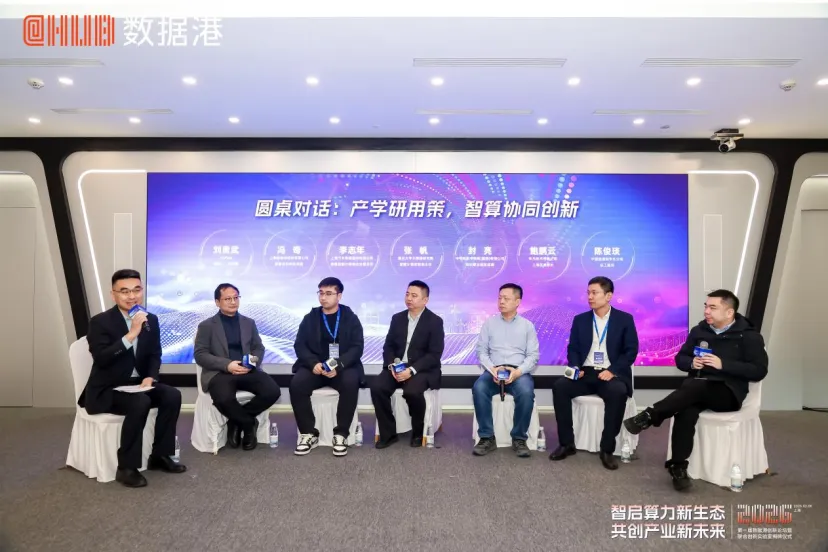 圆桌对话环节,围绕“产学研用策,智算协同创新”主题,由DCMap创始人、总经理刘贵武主持,数据港智算业务部总经理冯奇、上汽集团信息战略与网络安全部主任李志年、复旦大学大数据研究院智能计算实验室主任张帆、电科数字信创事业部总经理封亮、华为技术有限公司上海区域部长鲍鹏云、中国信通院华东分院总工程师陈俊琰展开深入探讨,从产学研用策各方视角,围绕智算生态发展、产业协作深化,赋能千行百业数字化转型等话题各抒己见、交流碰撞,凝聚发展共识,形成发展合力。