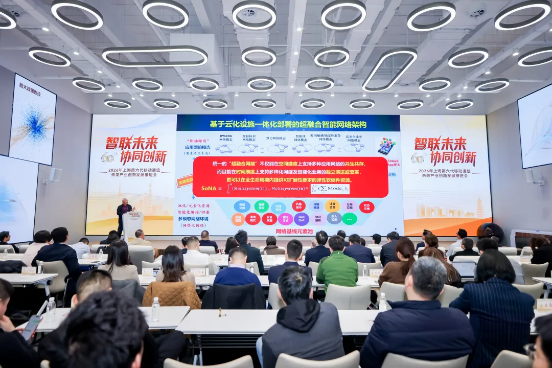 2026年3月26日,2026年上海第六代移动通信未来产业创新发展推进会在松江区6G信通智谷隆重举行。本次大会以“智联未来・协同创新”为主题,汇聚国内顶级“AI+空天地一体化”战略力量,旨在加快上海6G未来产业创新生态建设。会上,上海6G未来产业培育区正式启动,一揽子全链条产业支持政策、应用场景及6G未来产业基金矩阵同步发布。中国工程院邬江兴院士受邀发表主旨演讲,以《6G 时代超融合网络架构研究与实践》为题,深度剖析天基6G发展瓶颈,系统提出天地一体超融合卫星智能体网络架构构想,为天基 6G“一步跨入”智能体网络时代提供了清晰且可行的技术路径。