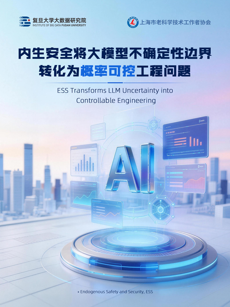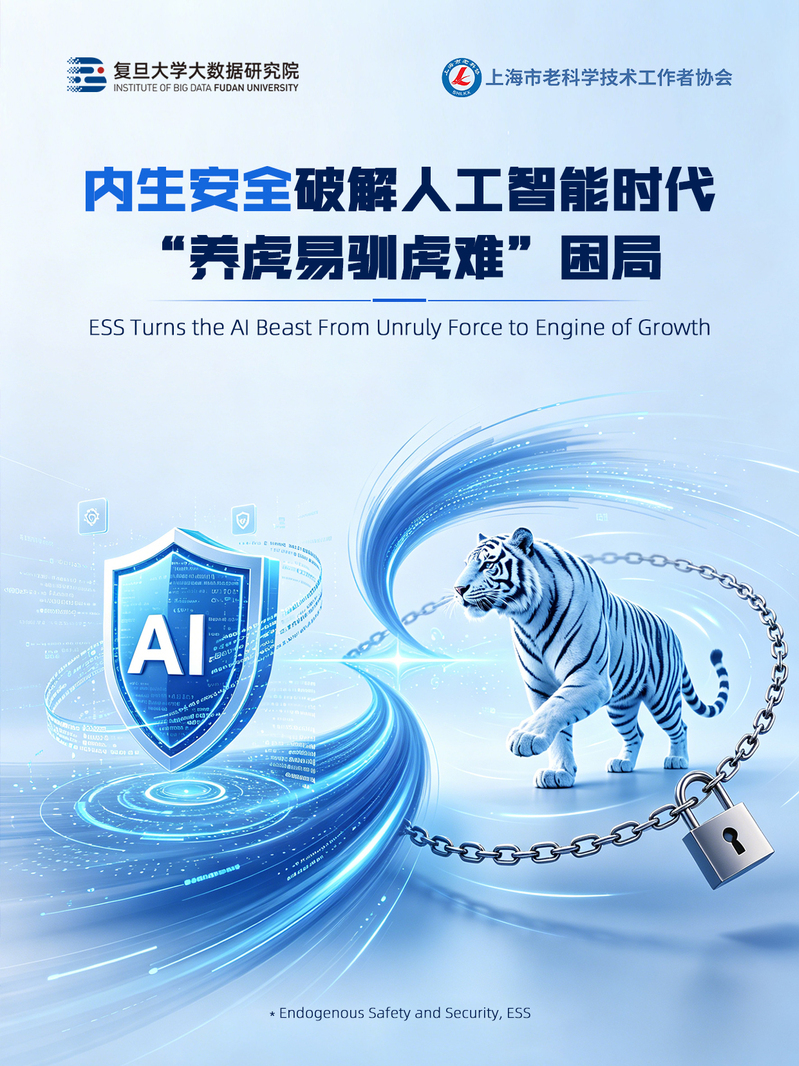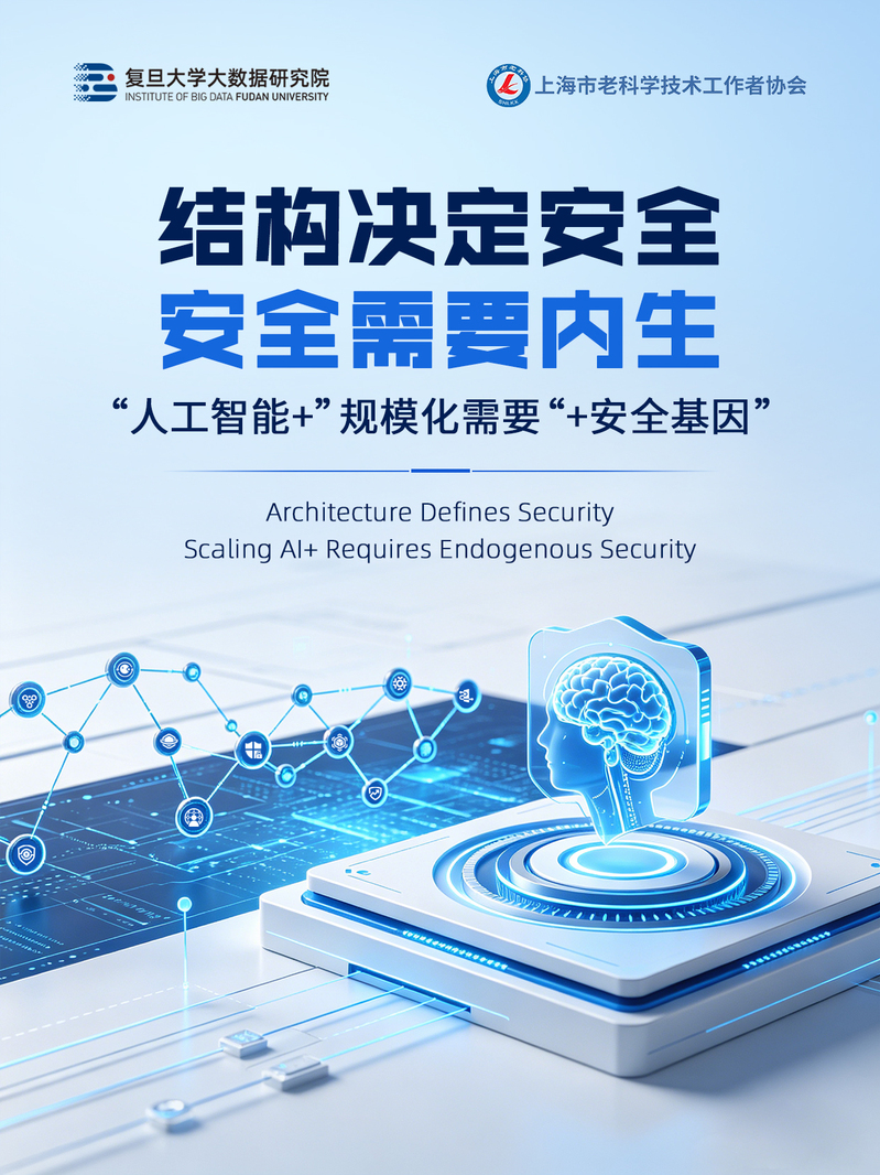 2026年4月15日是第十一个全民国家安全教育日,今年活动主题为“统筹发展和安全,护航‘十五五’新征程”。当前,智能经济正加速赋能新质生产力发展,内生安全成为人工智能系统不可或缺的质量属性。为普及新理念,复旦大学大数据研究院联合上海市老科学技术工作者协会,围绕人工智能内生安全编发一组海报,旨在宣传“智能向善、安全可控”的理念,推动在发挥好人工智能技术潜力的同时,保障发展的安全性、可靠性、可控性与公平性,共同构建包容、可信、可持续的美好智能未来。